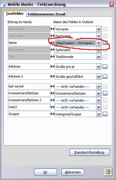 Select Settings -> Contacts -> Field assignment:Motorola phones: in Mobile Master I see the field 'Street/misc' but not in the phone