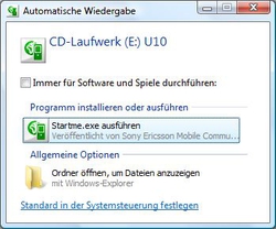Sollte der Autostart nicht funktionieren, so öffnen Sie bitte mit dem Windows Explorer das (neue) CD ROM Laufwerk und starten StartMe.exe per Hand: